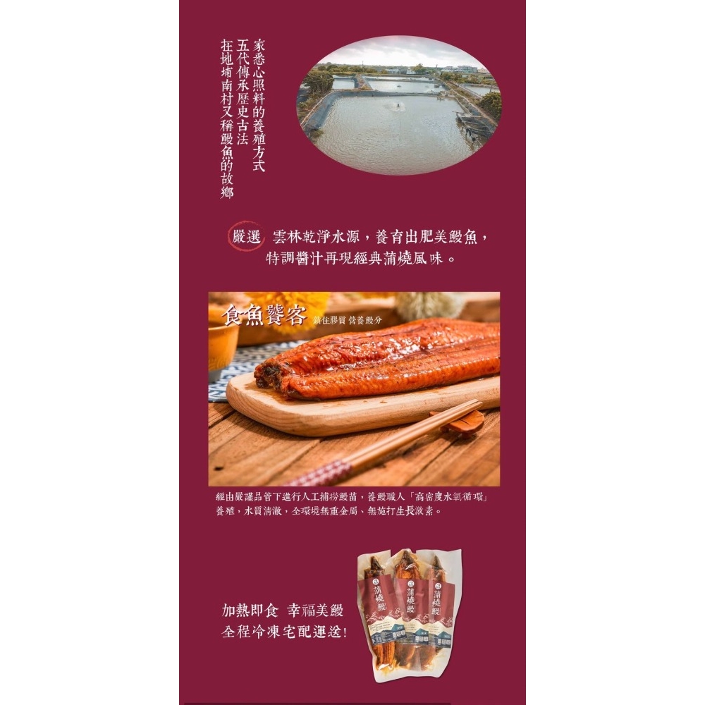 ●主要原料:鰻魚、特調珍味醬油、調味料