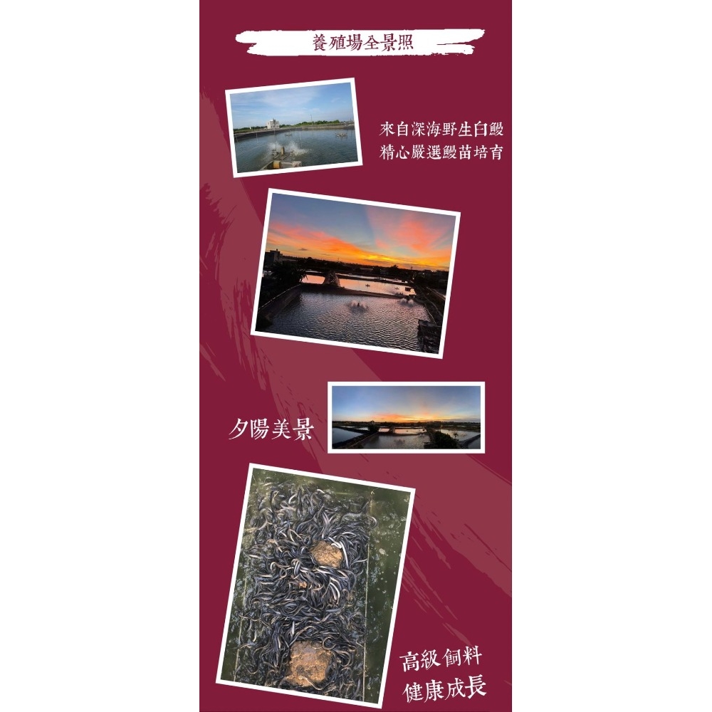 累積近半世紀養殖經驗,40年外銷日本,嚴選優質產品,提供最安心無虞的生鮮美食,請安心選購!鰻魚的營養成分比鱸魚、雞肉、牛肉等 高得多,維生素、礦物質和微量元素含量更是陸上動物所不能相比,鰻魚是含EPA和DHA最高的魚類之一。