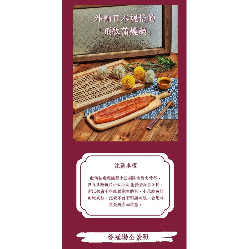 ●注意事項:鰻魚在處理過程中已剔除主要大骨等,但每批鰻魚尺寸大小及生